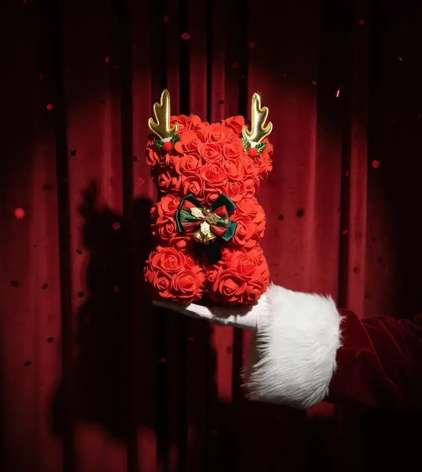 Коледно мече от рози е стилен подарък с елегантна визия и романтична символика, идеален за специални поводи и празнични изненади. Изработено от рози, то съчетава внимание към детайла с красиво представяне, което оставя трайно впечатление у получателя.