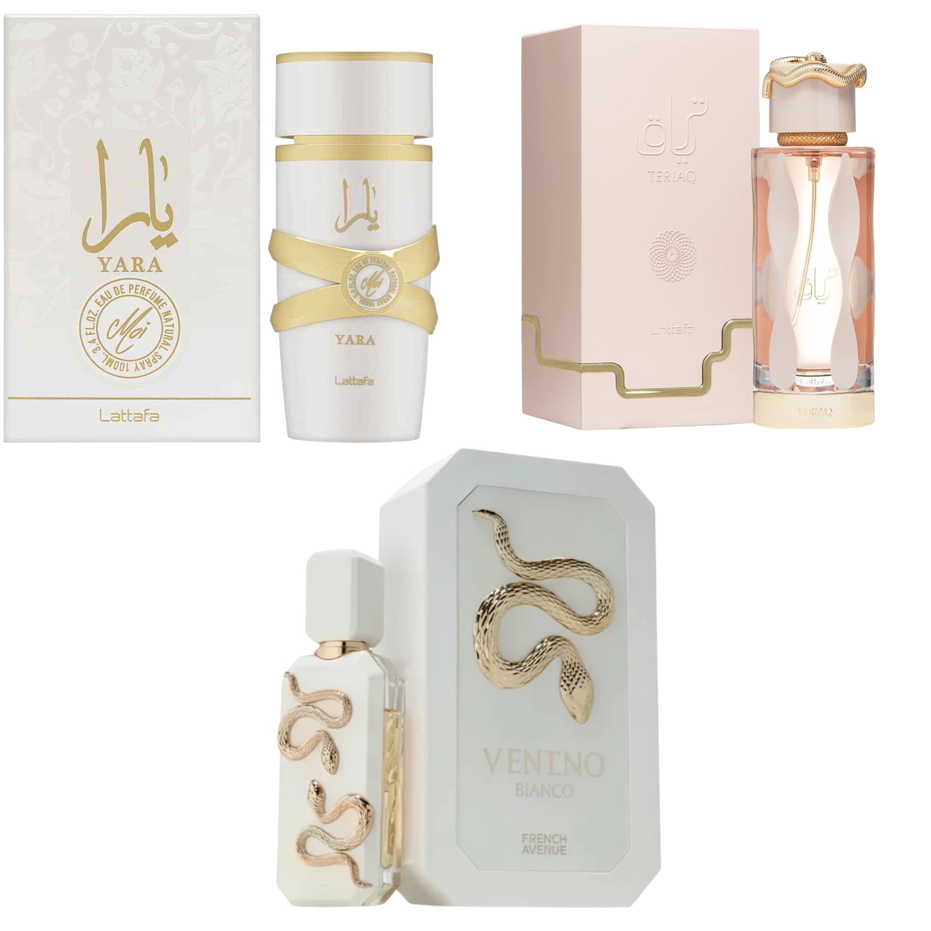 Комплект Бели цветя събира аромати с елегантни и нежни флорални акценти, които създават усещане за свежест, изтънченост и женствен чар. Идеален за ежедневна употреба или подарък, комплектът предлага разнообразие от ухания с приятен шлейф и отлична трайност.
